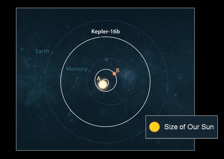 Trentaquattro anni fa George Lucas immaginava una storia che si svolgeva "in una galassia lontana lontana"; laggù, tra le migliaia di sistemi extrasolari, si trovava quello di Tatooine, pianeta natale del protagonista della Saga, Luke Skywalker. Pianeta che si trovava in un sistema solare molto particolare, che offriva questo tipo di spettacolo al tramonto: